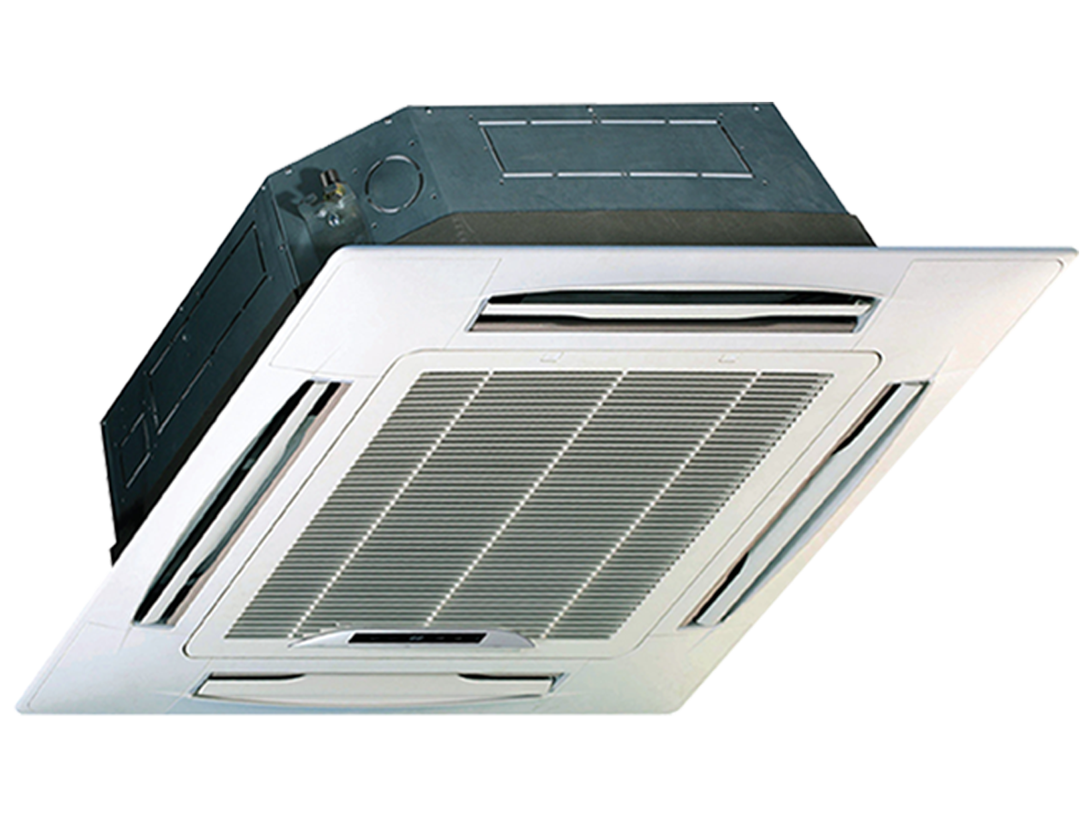 Cassette AC units are designed for ceiling-mounted installation, providing 360-degree airflow distribution for commercial spaces including offices, restaurants, showrooms, and hotels. Super General cassette units offer powerful cooling with minimal visual impact.