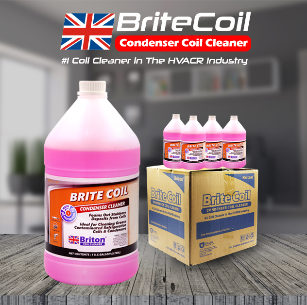 Brite Coil (Product of United Kingdom) is a concentrated, acid based, high-foaming outdoor condenser coil cleaner and brightener. It effectively foams away stubborn, “baked on” lint, smoke film, insects, feathers, grass, leaves and other deposits from air cooled condenser coils. The expanding foam pushes contamination out of the coil and is easily rinsed away with water. In addition to removing contaminants, the Brite Coil formula effectively restores efficiency and reduces operating cost by removing hidden oxidation from the coil surfaces.